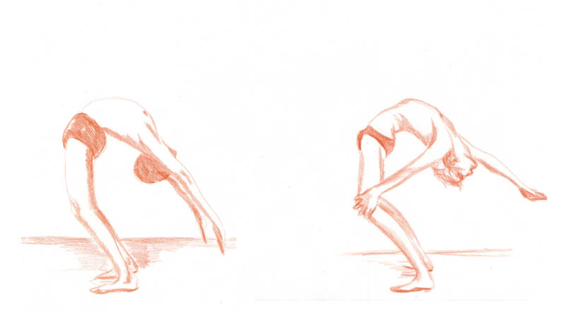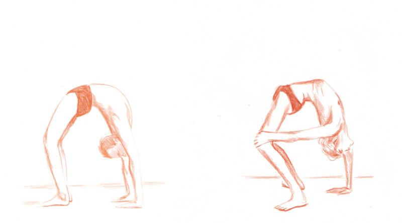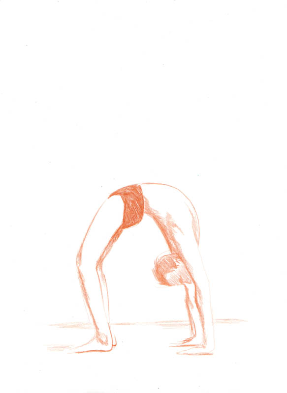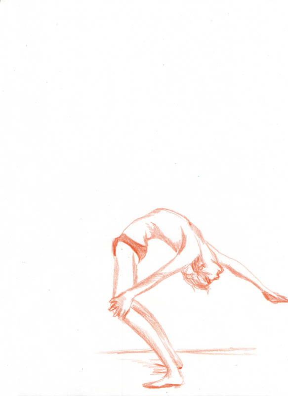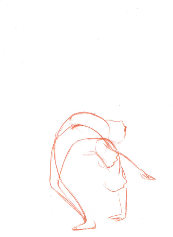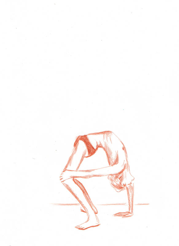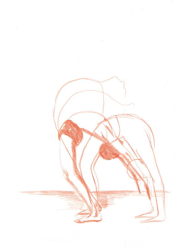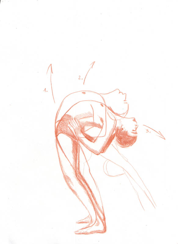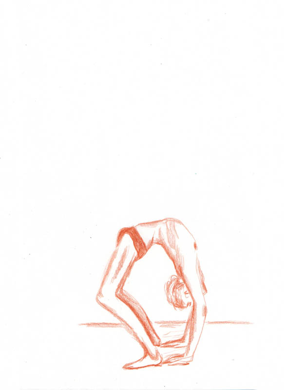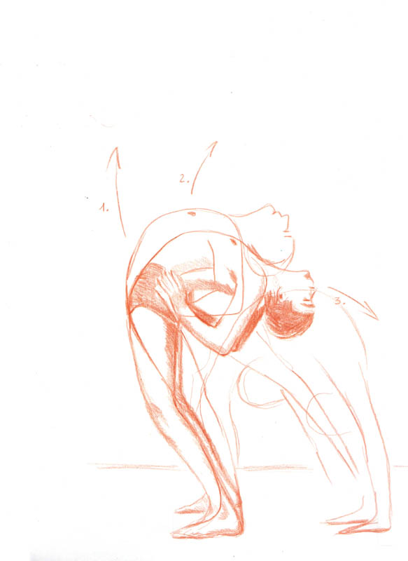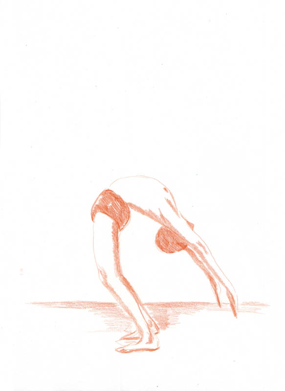 This drawings shall express the lenghtening of the spine in wheel pose chakrasana. By lenghtening the spine, there is created a new space for the next movements.