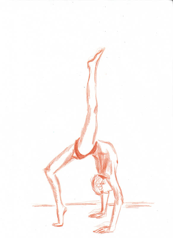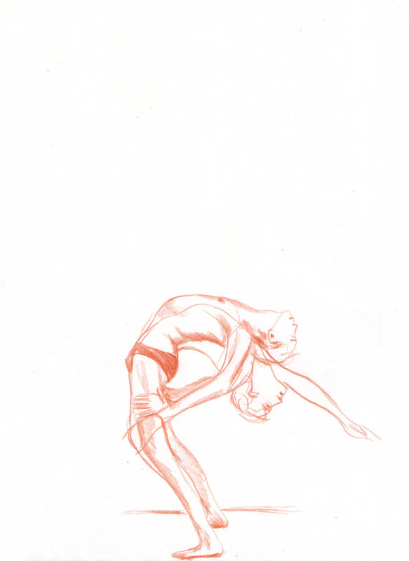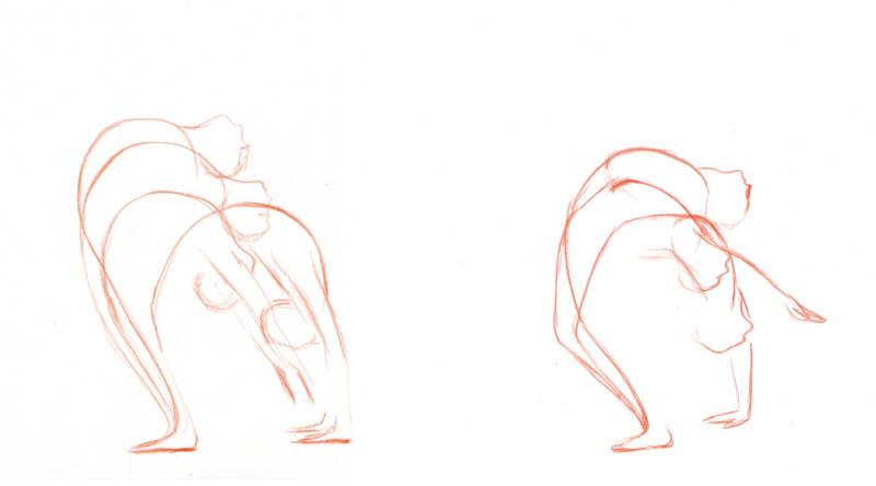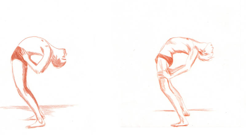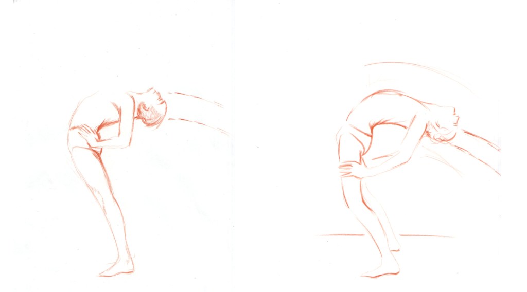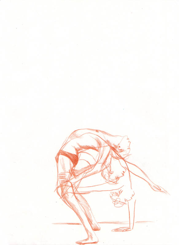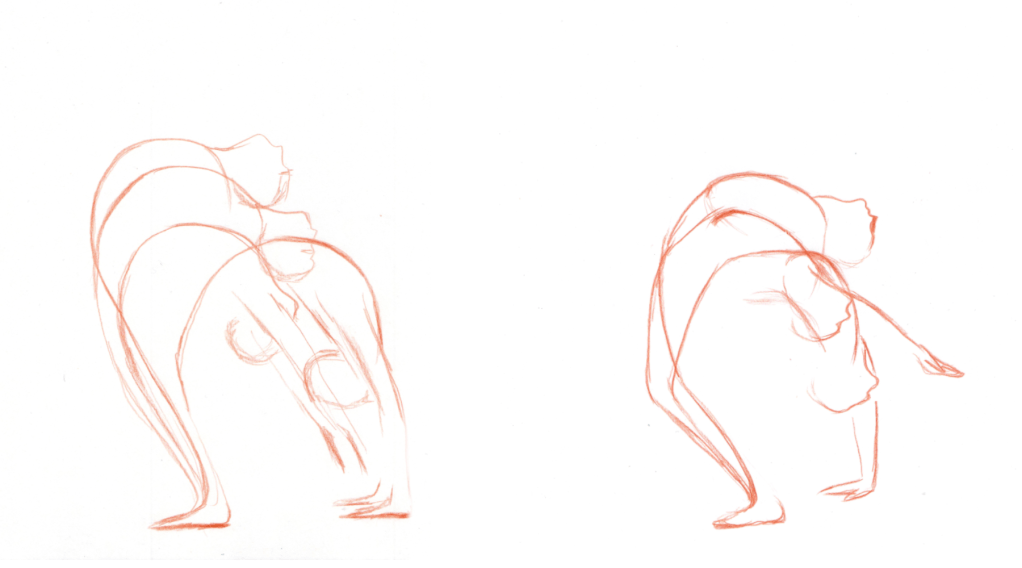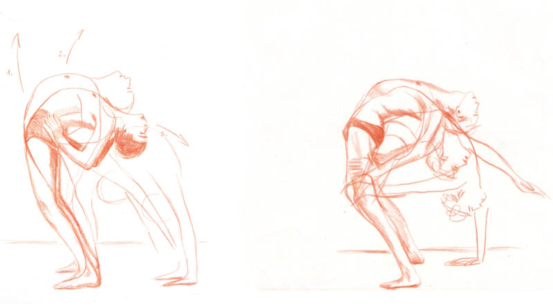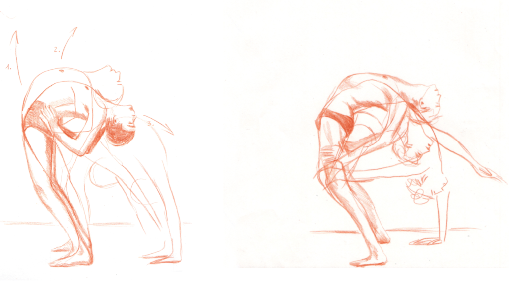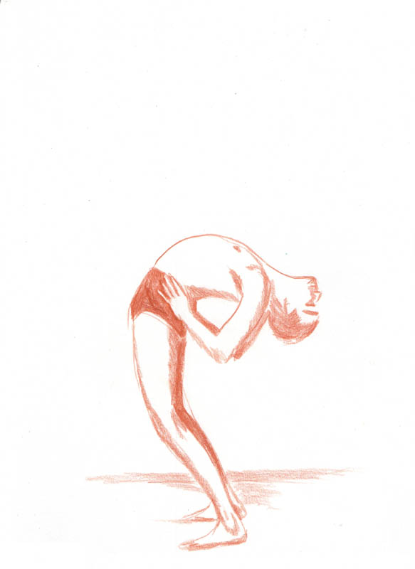 This drawings shall express the lenghtening of the spine in wheel pose chakrasana. By lenghtening the spine, there is created a new space for the next movements.