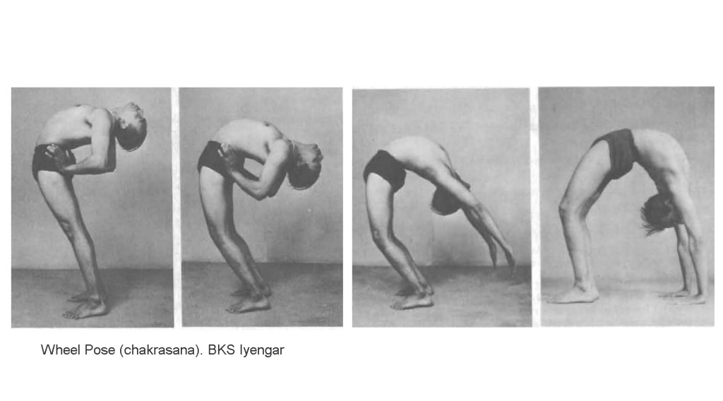Both, BKS Iyengar and Heinz Grill first lift the chest upwards. Both, BKS Iyengar as well as Heinz Grill first lift up the chest and create a wide rising bow.