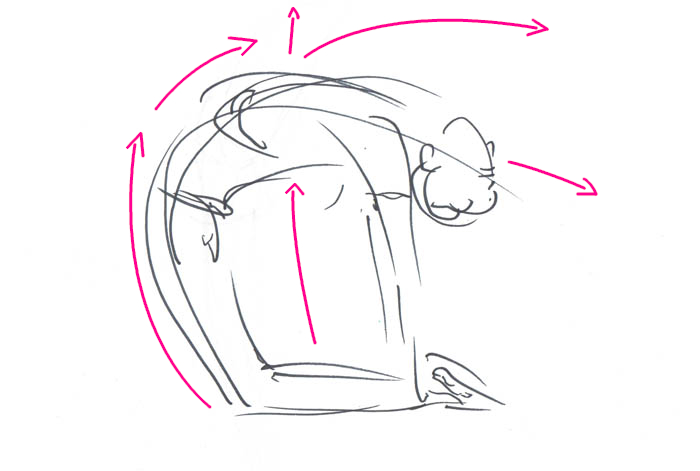 In this drawings I wanted to express the uprising dynamic of the upper body. The upper body creates an wide arch and the chest lifts up. The body does not bend back but moves upwards.