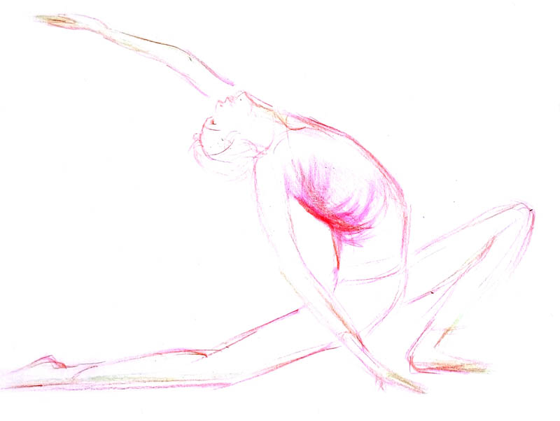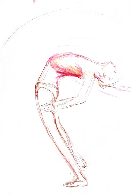 In this Pidgon Pose. Kapotasana of Heinz Grill, I wanted to express the backbending dynamic out of the chest.