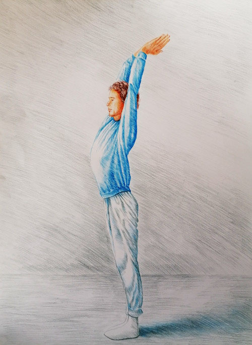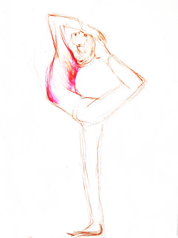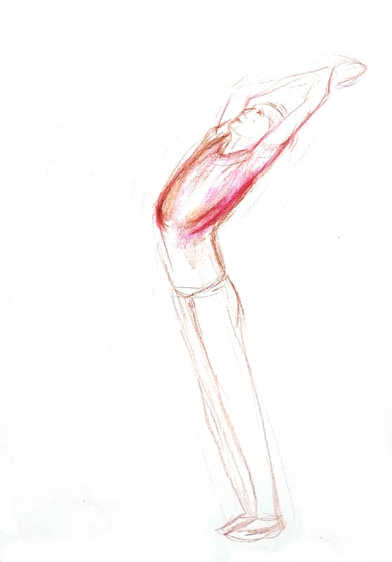 In this dancers pose, I wanted to express the chest. It is vertically erected.