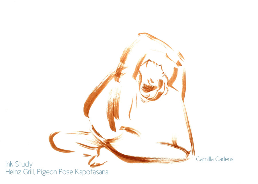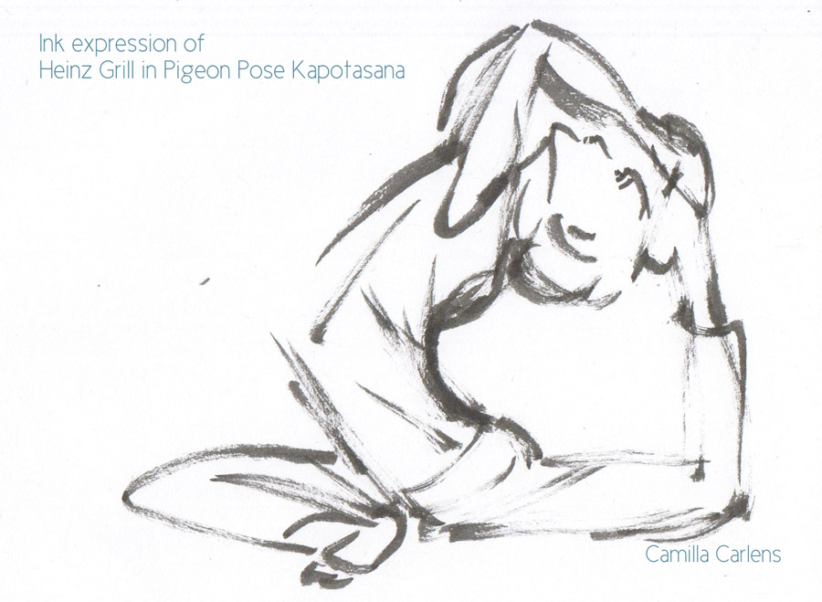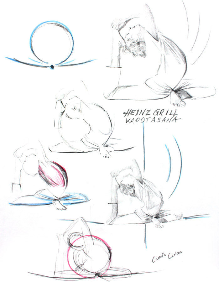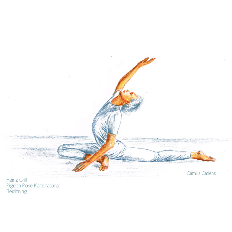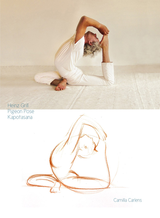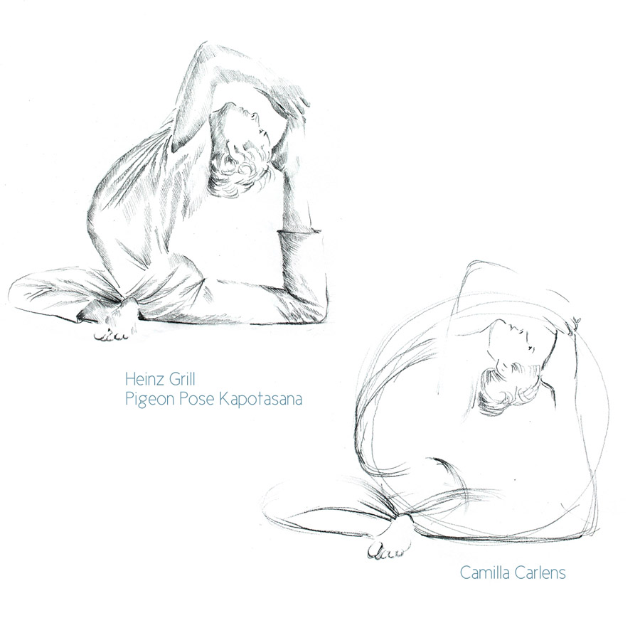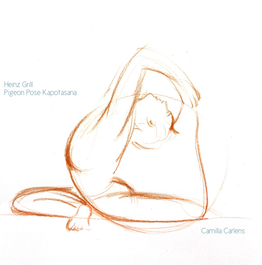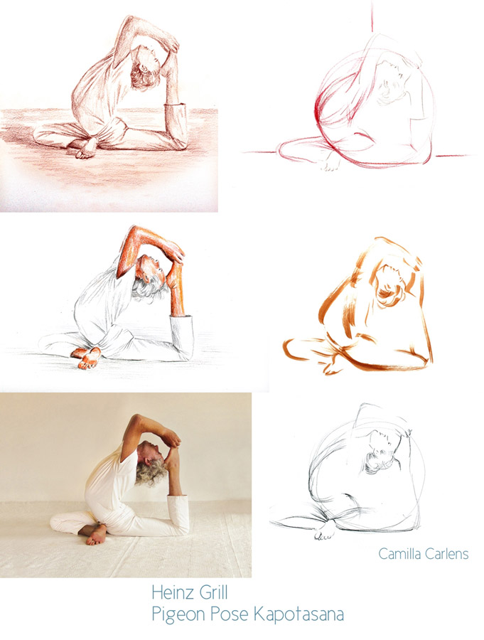This collection shows studies of a beautiful pidgon pose of Heinz Grill – a german spiritual teacher and yogi. In his book, I found an expressive picture of his posture as well as an interesting description of pidgon pose. He describes this pose with a contraction movement of the legs and the spine. The upper body is shaping a circle. In these drawings I wanted to make visible these expression of the yoga posture of Heinz Grill.