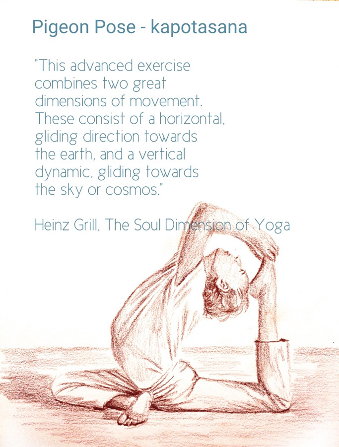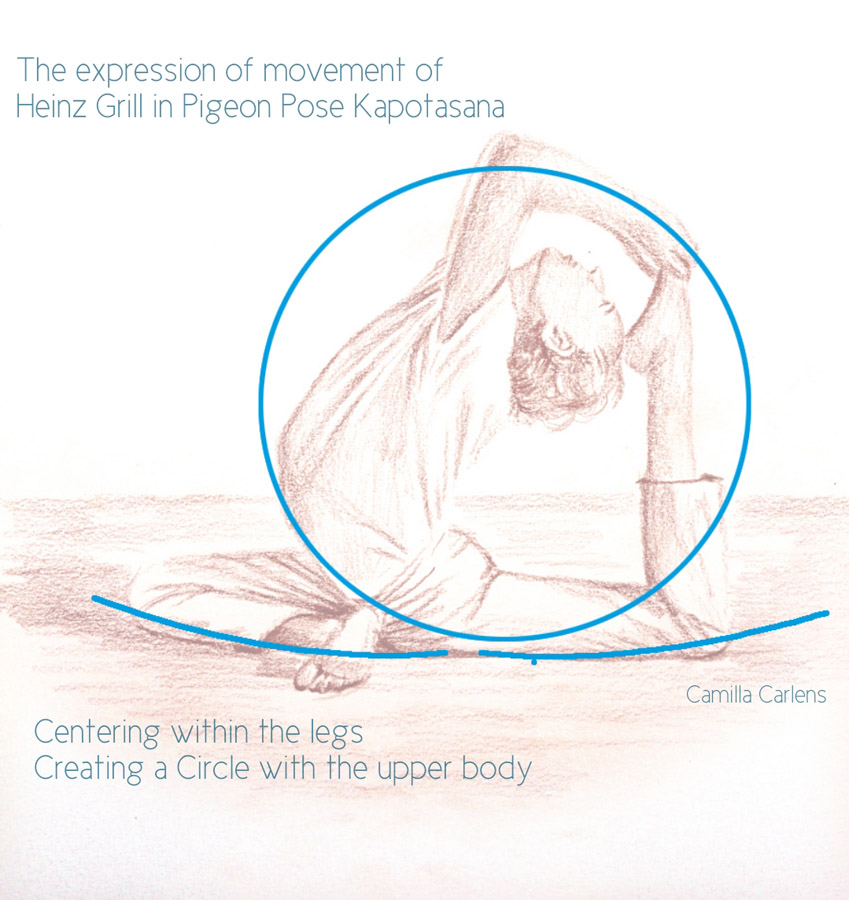 “This advanced exercise combines two great dimensions of movement. These are a horizontal, gliding direction towards the earth, and a vertical dynamic, gliding towards the sky or cosmos.”