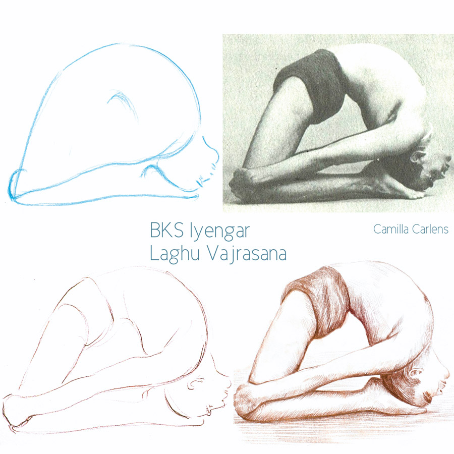 In these drawings I tried to make visible the expression of BKS Iyengar’s diamond pose. With my drawings I’d like to inspire the fact, that one can learn and improve his yoga practice by studying and exploring professional yoga postures, transcending styles.