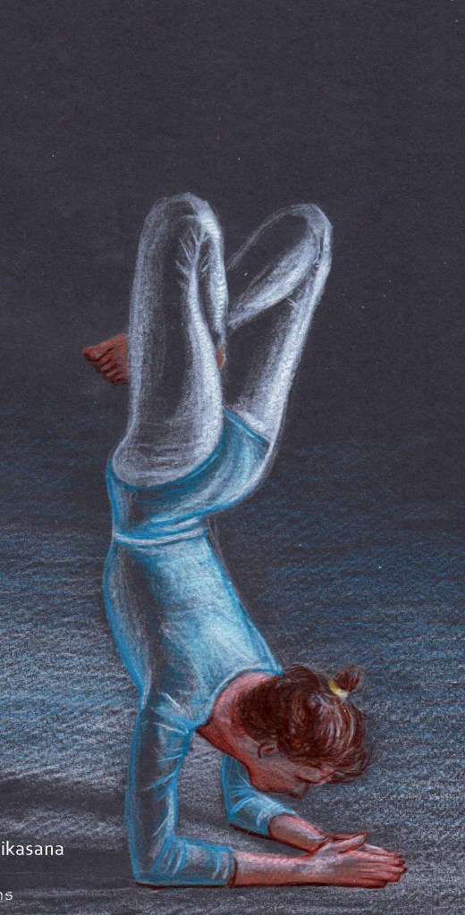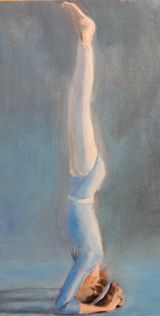 In my acrylic paintings I portrait yoga poses of different yogis. I want to emphasis the individual expression and style of the yogis and catch the individual atmosphere.