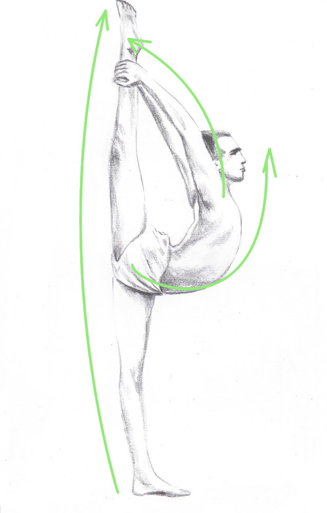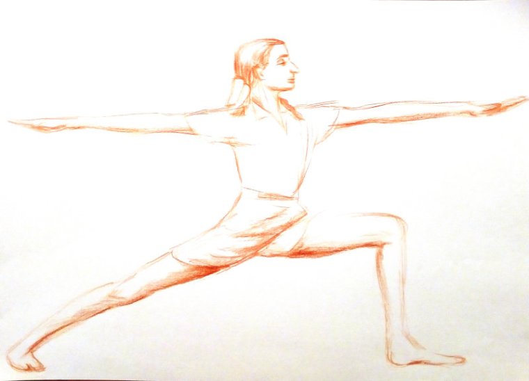 A yoga pose can express dynamic and movement. The seeing of the dynamic lines of action promotes you, to make your postures lively and expressive, too. The lines of dynamic depend very much on the person and it´s relation to the pose and to the body.